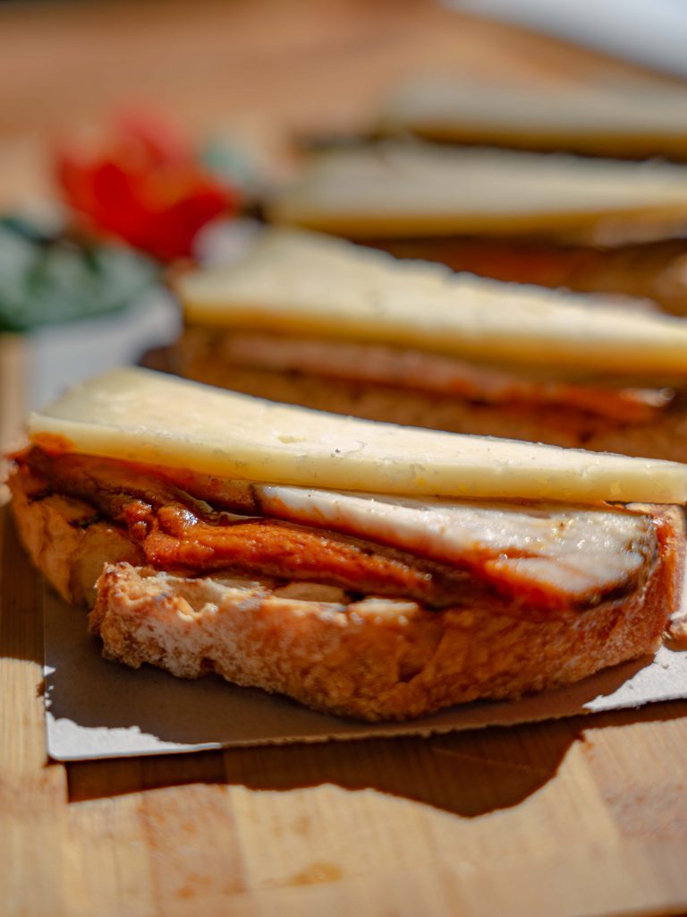 Al probarlo, se produce un juego de sabores increíble: la cremosidad del queso, el sabor tan auténtico del chicharrón andaluz, y el cierre final con la potencia del mojo. El resultado es un bocado adictivo que invita a repetir incluso antes de haber terminado el primero.