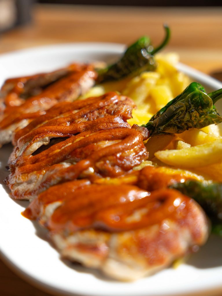 Para los que buscan algo más contundente, Chiqueros ofrece su solomillo al mojo picón, disponible tanto en tapa como en plato. Es la máxima expresión de cómo una salsa de calidad puede elevar una buena carne, dándole ese punto especiado y profundo, y convirtiéndose en la opción perfecta para quienes buscan un plato con cuerpo donde el sabor de la brasa y la potencia de la salsa se complementan a la perfección.